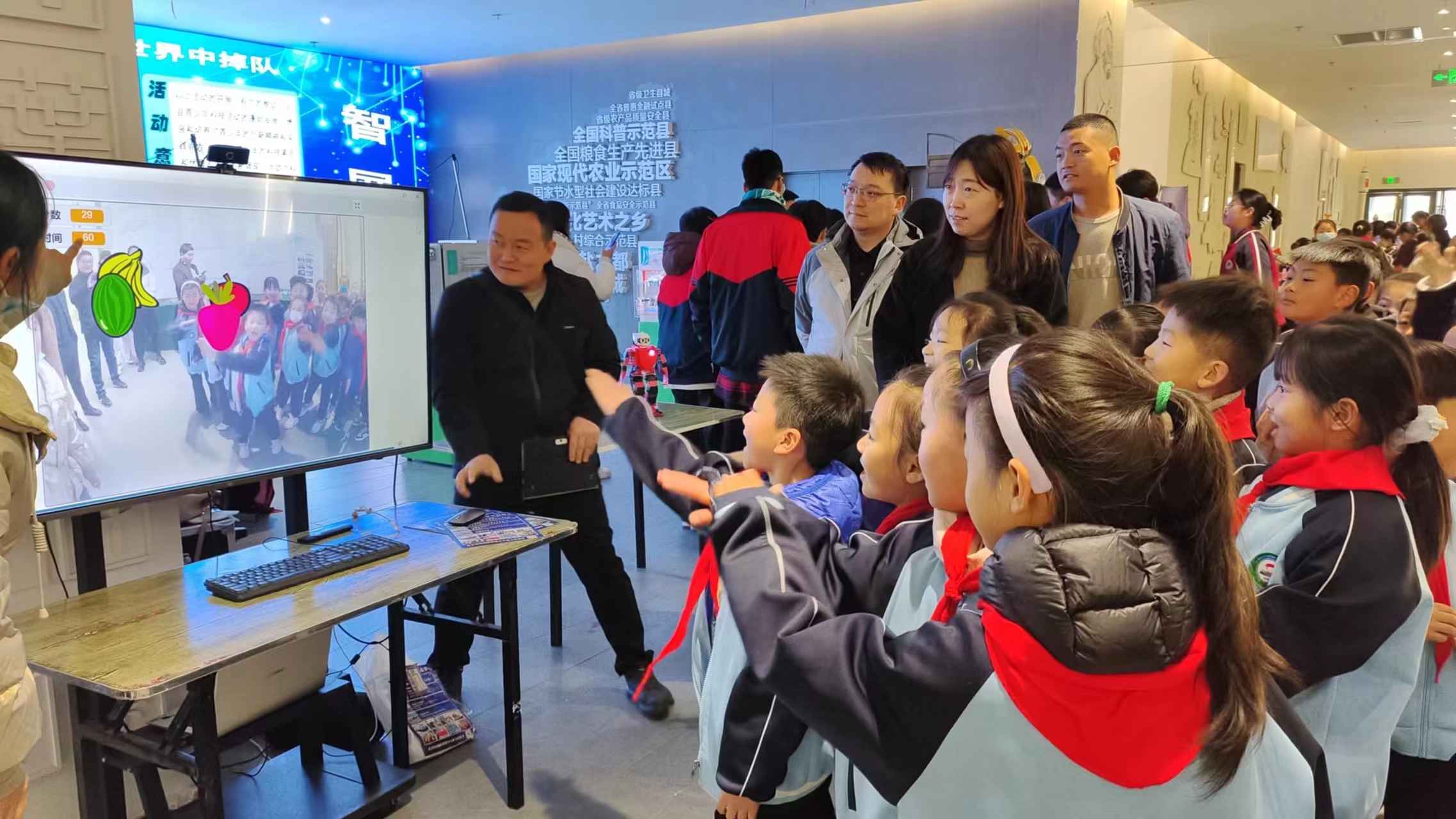 活动现场人潮涌动,凛冽的寒风也无法吹散人们的热情。广场上充满想象力的书画作品布满一块块展板,室内的展台上各种科技作品琳琅满目。大人小孩不时驻足观看,听着小小讲解员对作品的讲解,拿出手机,记录着各种奇妙小实验。